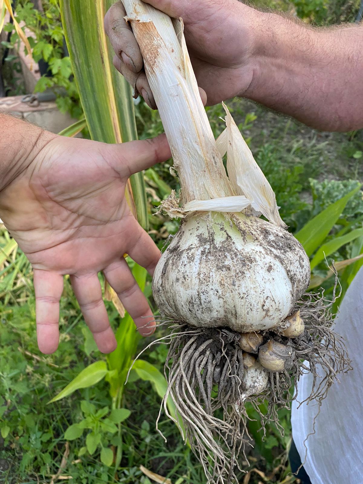 Gracias a todos estos fertilizantes, los ajos han crecido sin problema, fuertes, grandes y erguidos, echando muchísimas raíces.
